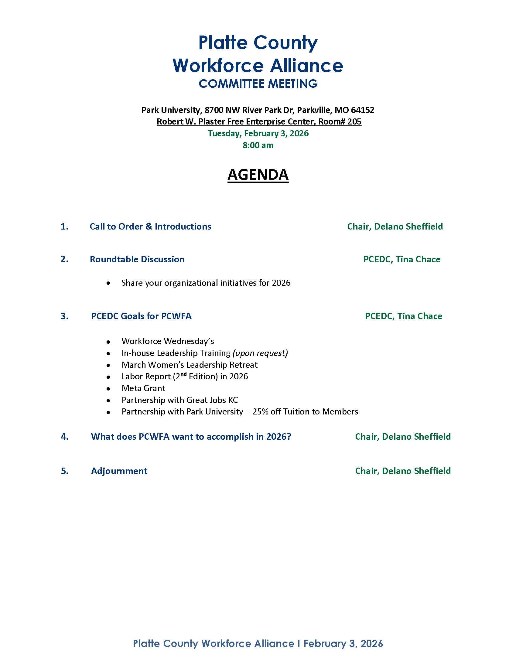 PCWFA brings together Platte County business leaders and education partners to commission labor studies, create opportunities for students to explore careers, build relationships together to enhance training for employers, and market the region as a great place to do business.